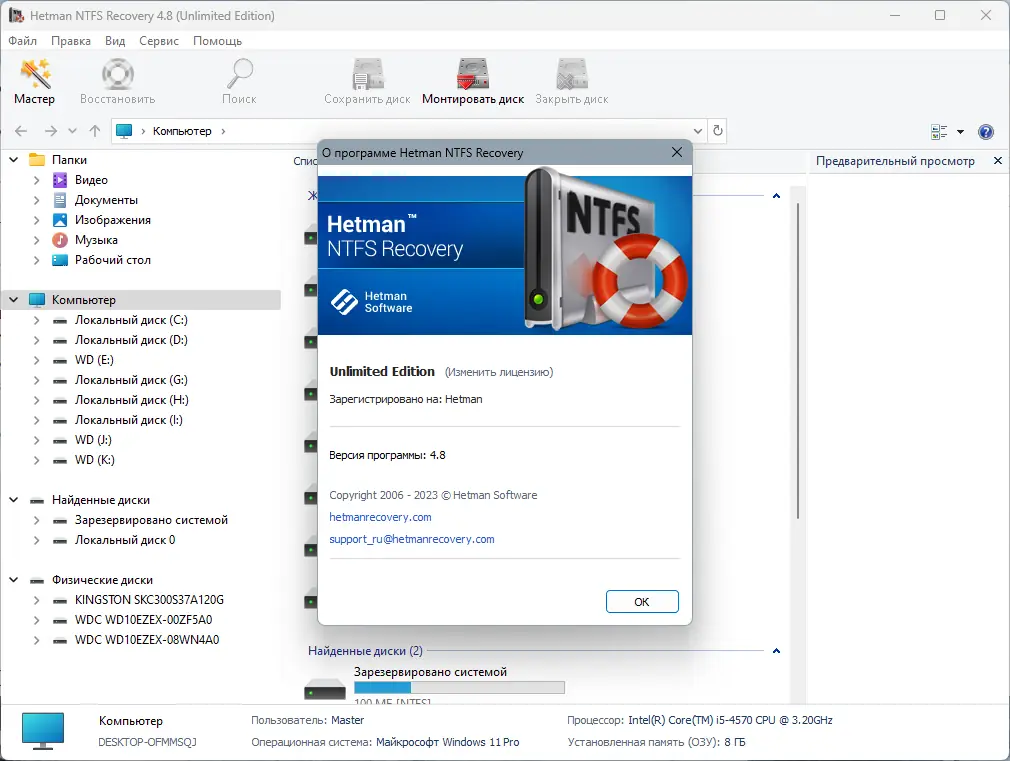 Пакет Hetman Recovery Software доступен для использования без установки и лицензионных ограничений в рамках текущей редакции. Все утилиты собраны в единую портабельную оболочку, что упрощает доступ к нужному инструменту. Программы не модифицируют систему и могут запускаться с USB-накопителя.