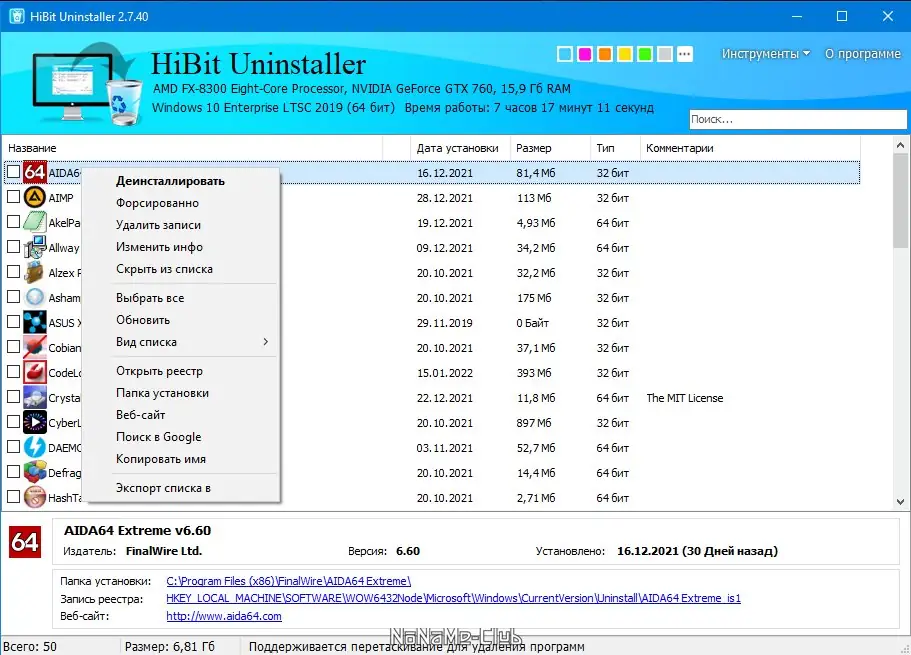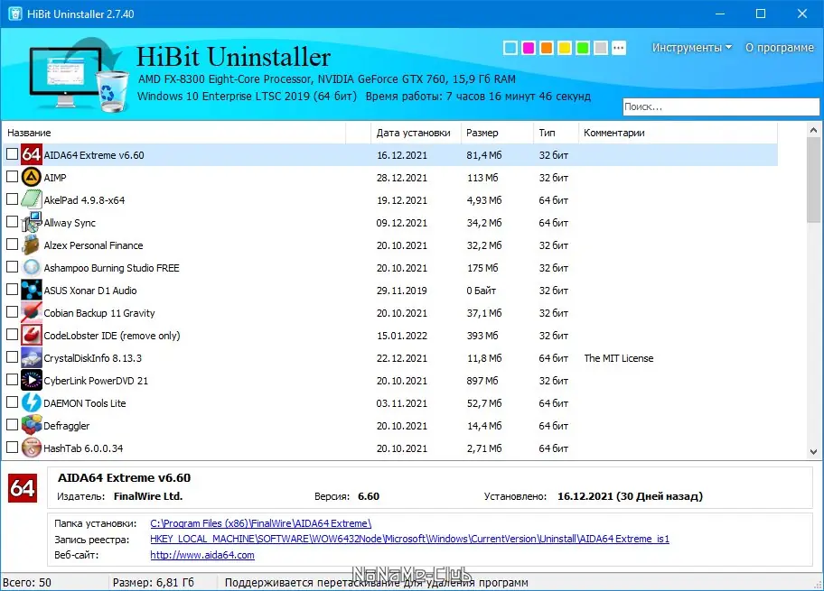 Описание HiBit Uninstaller
