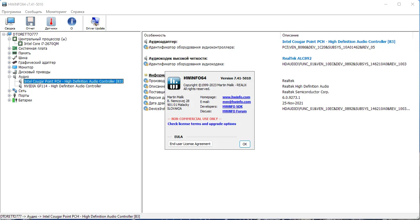 HWiNFO отличается высокой точностью сбора данных и минимальным влиянием на производительность системы. Утилита не вызывает сбоев, зависаний или ошибок при длительной работе, что подтверждается тестированием в различных конфигурациях. Поддержка новых компонентов обновляется регулярно, включая последние модели видеокарт и процессоров. В версии 7.41 добавлена поддержка NVIDIA GeForce RTX 4050 для ноутбуков, улучшена работа с датчиками на платах MSI и EVGA, а также расширена совместимость с AMD Phoenix. Однако из-за большого объёма технической информации новичкам может потребоваться время для освоения всех функций.