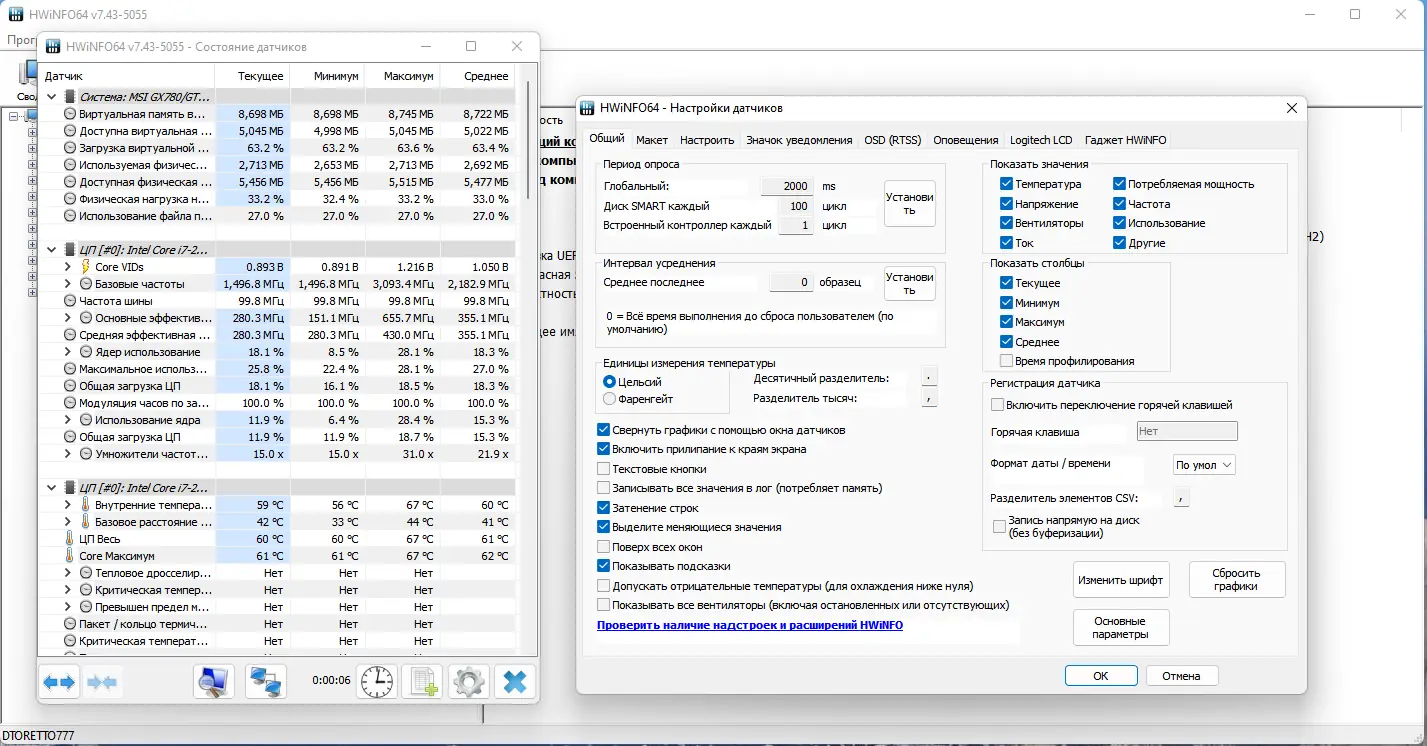 - Точное измерение температуры, напряжения, частот и загрузки компонентов
