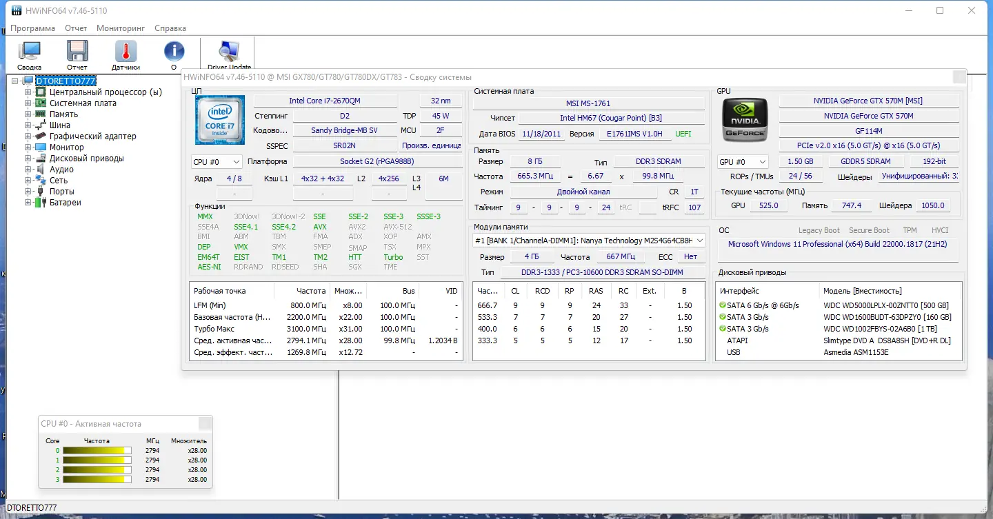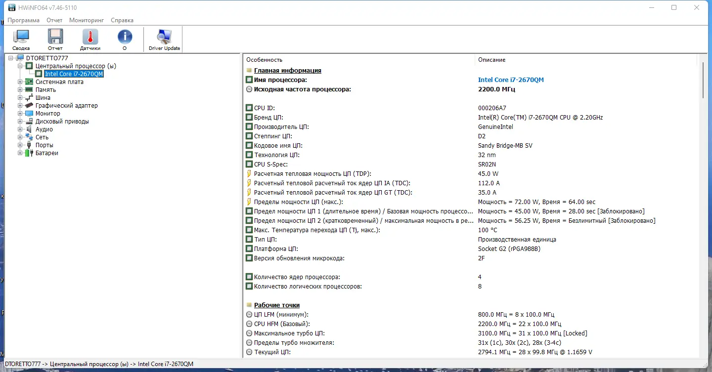 - Программа автоматически определяет все подключенные устройства и отображает их технические характеристики с высокой степенью детализации.