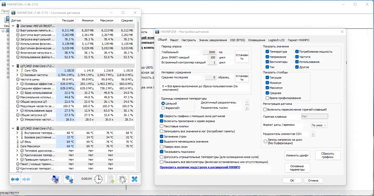 - Поддерживается мониторинг температуры компонентов в реальном времени, что особенно важно при разгоне или длительной нагрузке.