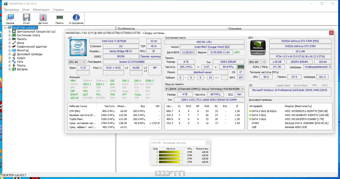 - Подробная диагностика центрального и графического процессоров, материнской платы и оперативной памяти