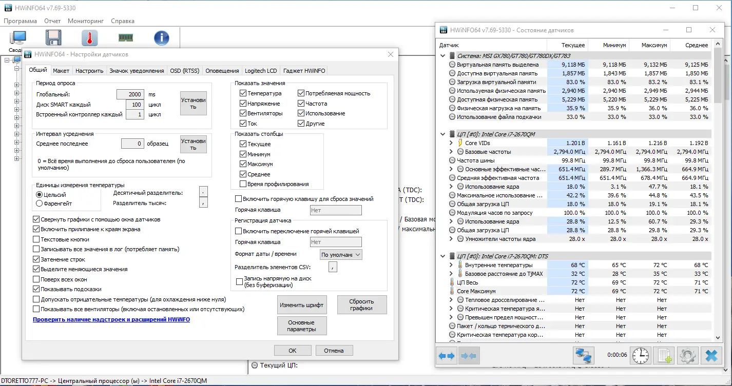 HWiNFO предоставляет полный обзор аппаратной конфигурации персонального компьютера. Утилита определяет модели и характеристики всех ключевых компонентов, включая центральный процессор, чипсет материнской платы, видеоконтроллеры, модули оперативной памяти, накопители и периферийные устройства. Сбор данных осуществляется в фоновом режиме с минимальным влиянием на производительность.