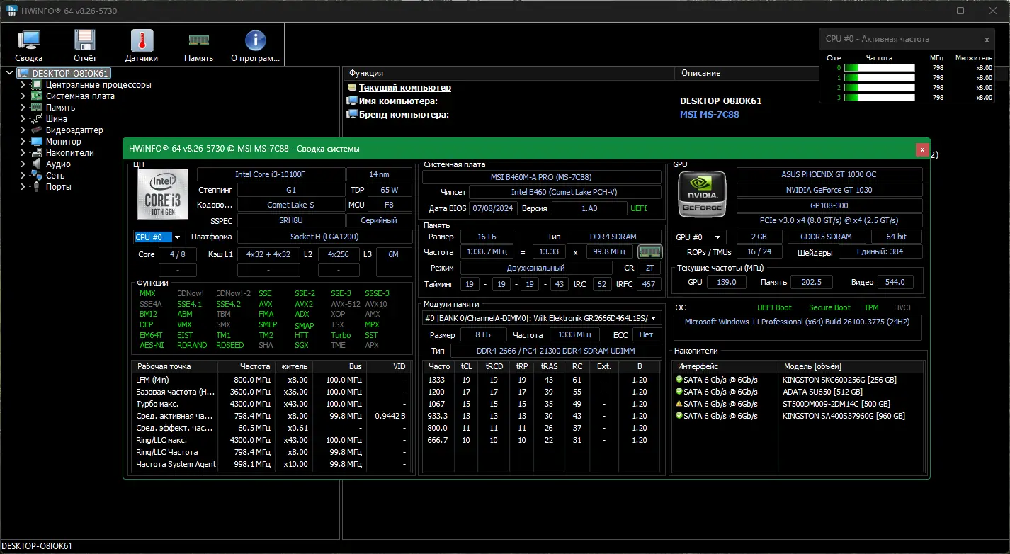 HWiNFO — это универсальный инструмент для детального анализа аппаратного обеспечения персонального компьютера. Программа автоматически определяет все подключённые устройства и отображает их параметры в удобном интерфейсе. Пользователь получает доступ к информации о процессоре, видеокарте, оперативной памяти, накопителях, материнской плате, звуковых и сетевых адаптерах.