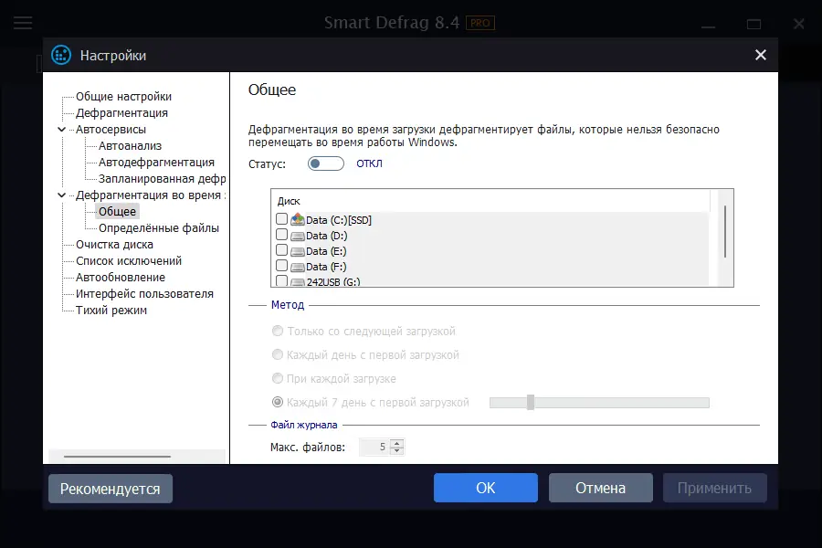 - Поддерживает настройку расписания для регулярной оптимизации дисков