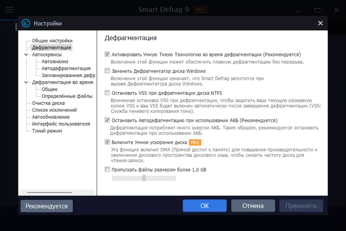 - Поддерживает фоновую дефрагментацию без нагрузки на систему.
