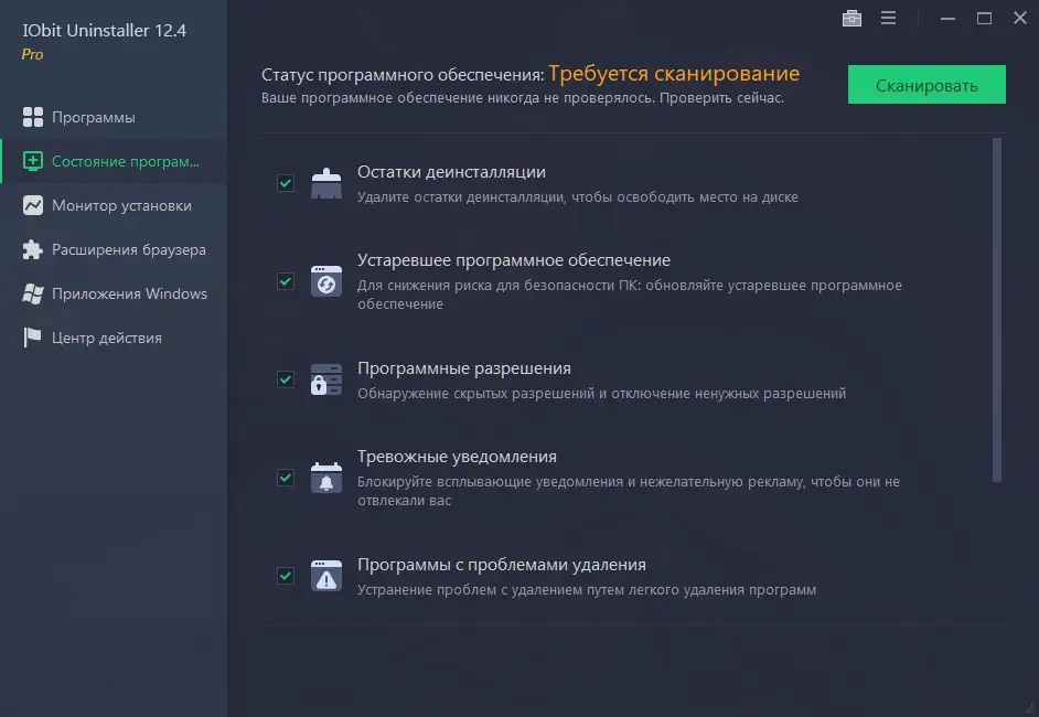 - Полная очистка после удалённых приложений, включая реестр и временные файлы