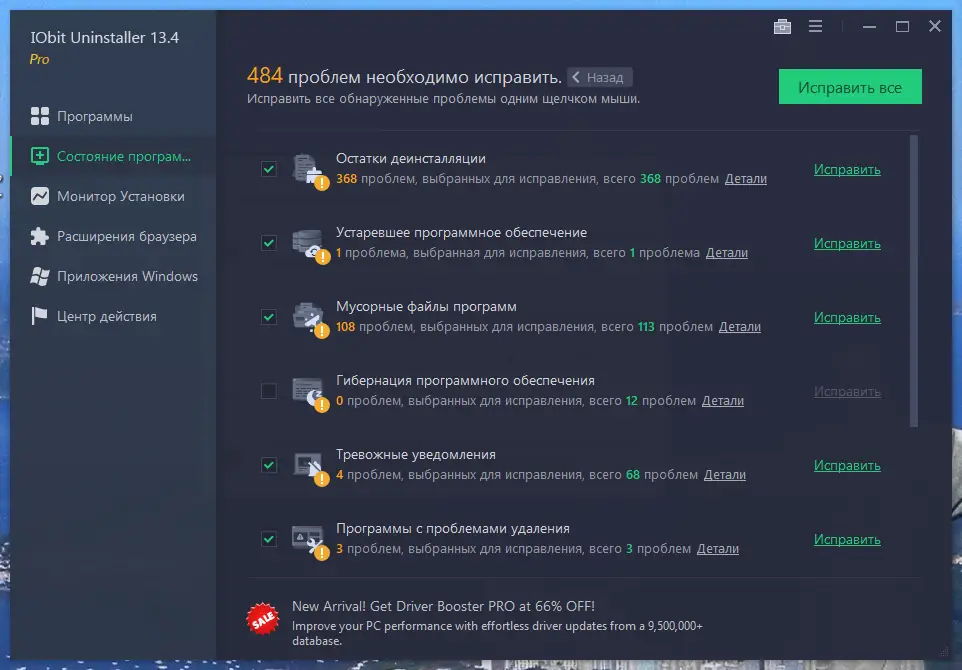 IObit Uninstaller эффективно справляется с задачей деинсталляции программ, оставляя после себя минимальный след. Утилита автоматически сканирует систему, обнаруживая установленные приложения, обновления Windows, расширения браузеров и сторонние плагины. Благодаря функции «Мощное сканирование», после удаления программы проводится дополнительная проверка на наличие остаточных файлов и записей в реестре, что исключает накопление мусора со временем. Это особенно важно для поддержания высокой производительности операционной системы.