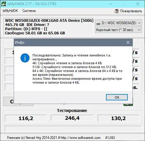 IsMyHdOK — компактная утилита для тестирования производительности жёстких дисков и других накопителей, работающая без установки и позволяющая быстро оценить скорость чтения и записи данных на HDD, SSD и USB-устройствах.