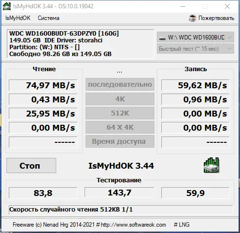 IsMyHdOK — компактная утилита для тестирования производительности жестких дисков и накопителей. Программа позволяет быстро оценить скорость работы HDD, SSD и USB-устройств, поддерживает различные режимы проверки и не требует установки. Подходит для диагностики накопителей в повседневном использовании и при настройке систем.