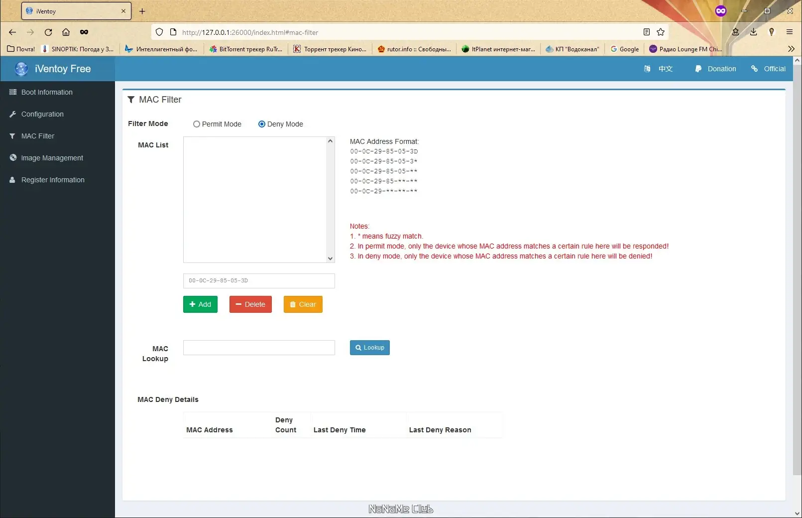 - Возможность фильтрации клиентских устройств по MAC-адресу, что повышает безопасность и точность развертывания.