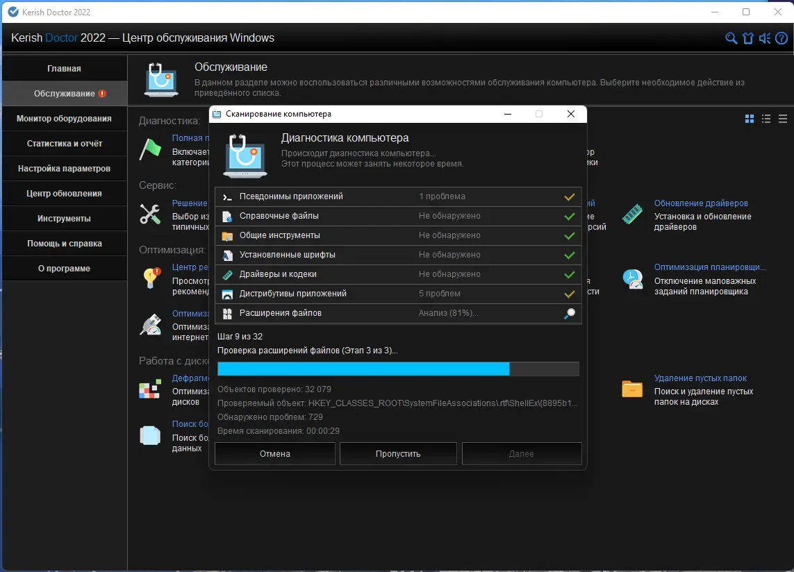 Kerish Doctor — программное обеспечение для комплексной оптимизации и автоматического обслуживания операционной системы Windows. Утилита работает в фоновом режиме, предотвращая сбои, устраняя ошибки реестра, очищая систему от временных файлов и повышая общую производительность. Решение подходит как для новичков, так и для продвинутых пользователей, обеспечивая стабильность и безопасность компьютера без необходимости вмешательства.
