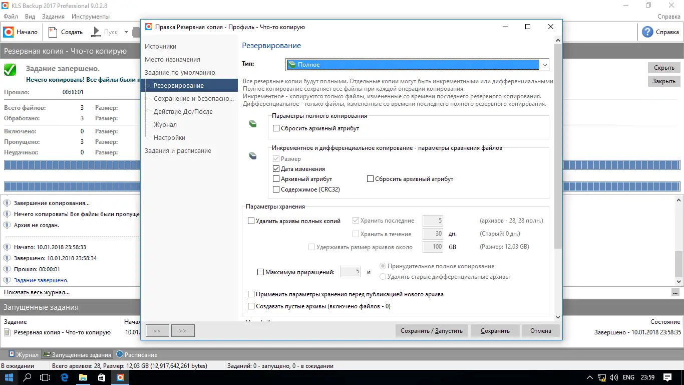 - Наличие продвинутых режимов резервирования — полное, инкрементальное, дифференциальное.