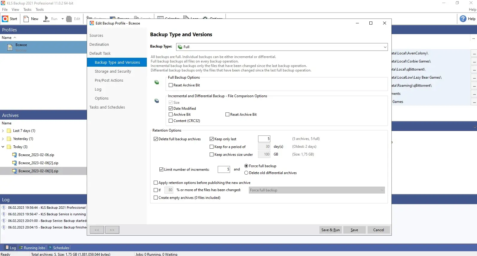 KLS Backup сочетает в себе функциональность и простоту интерфейса, что делает её подходящим инструментом как для домашних пользователей, так и для специалистов в корпоративной среде. Программа поддерживает полное, инкрементное и дифференциальное резервное копирование, что позволяет эффективно использовать дисковое пространство и минимизировать время выполнения задач. Архивы могут создаваться в форматах Zip, Zip64, 7z и SQX, с применением шифрования по стандарту AES, что гарантирует конфиденциальность чувствительных данных.