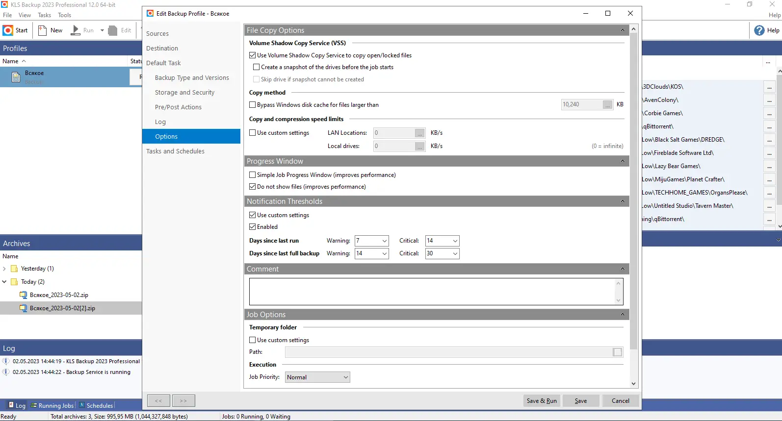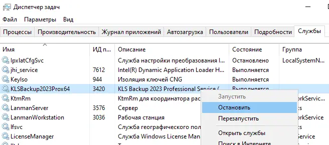Описание KLS Backup