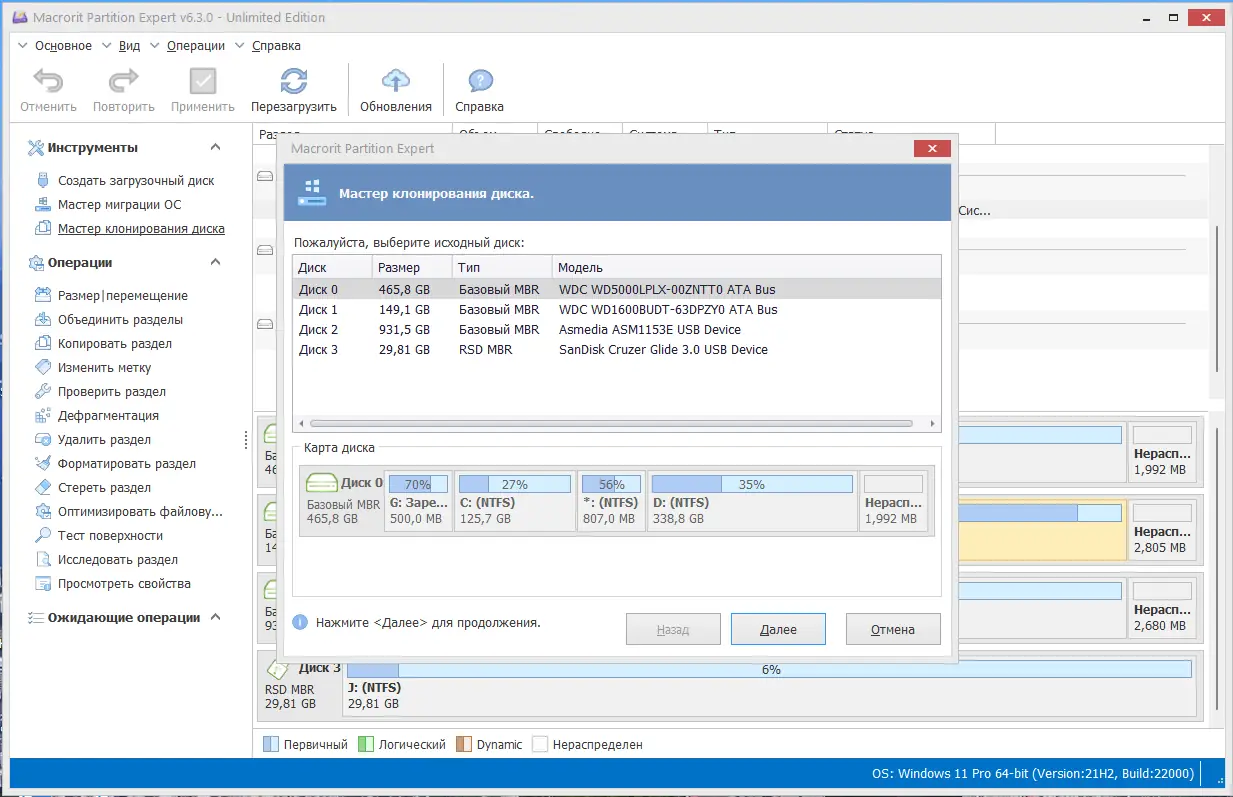 Интерфейс утилиты интуитивно понятен и не требует глубоких технических знаний. После запуска программы отображается схема всех подключённых дисков и их разделов. Пользователь может выбрать нужный раздел, щёлкнув по нему правой кнопкой мыши, и вызвать контекстное меню с доступными действиями: изменить размер, переместить, отформатировать, скопировать или удалить. Перед выполнением операций система предлагает предварительный просмотр изменений. Все действия можно отменить до подтверждения, что делает процесс безопасным. Для сложных задач, таких как клонирование диска или восстановление разделов, предусмотрены отдельные мастер-режимы.