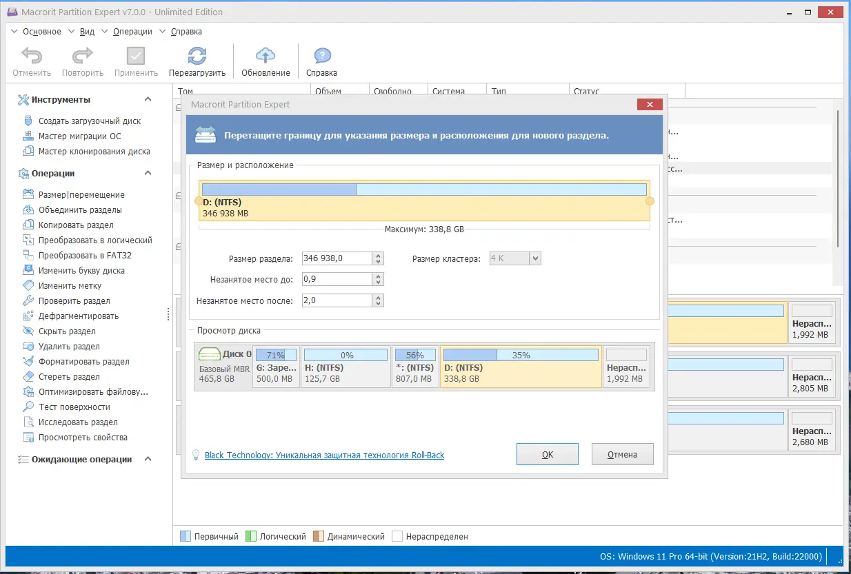 - Автоматическая дефрагментация при изменении размеров разделов для поддержания максимальной производительности системы