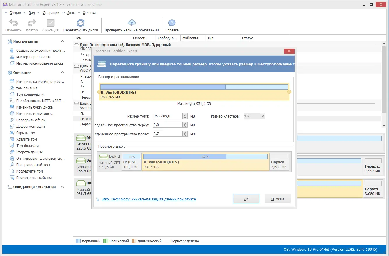 - Возможность отмены операций на любом этапе даёт полный контроль над процессом модификации диска.