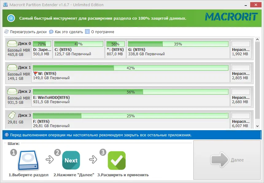 Как пользоваться Macrorit Partition Extender