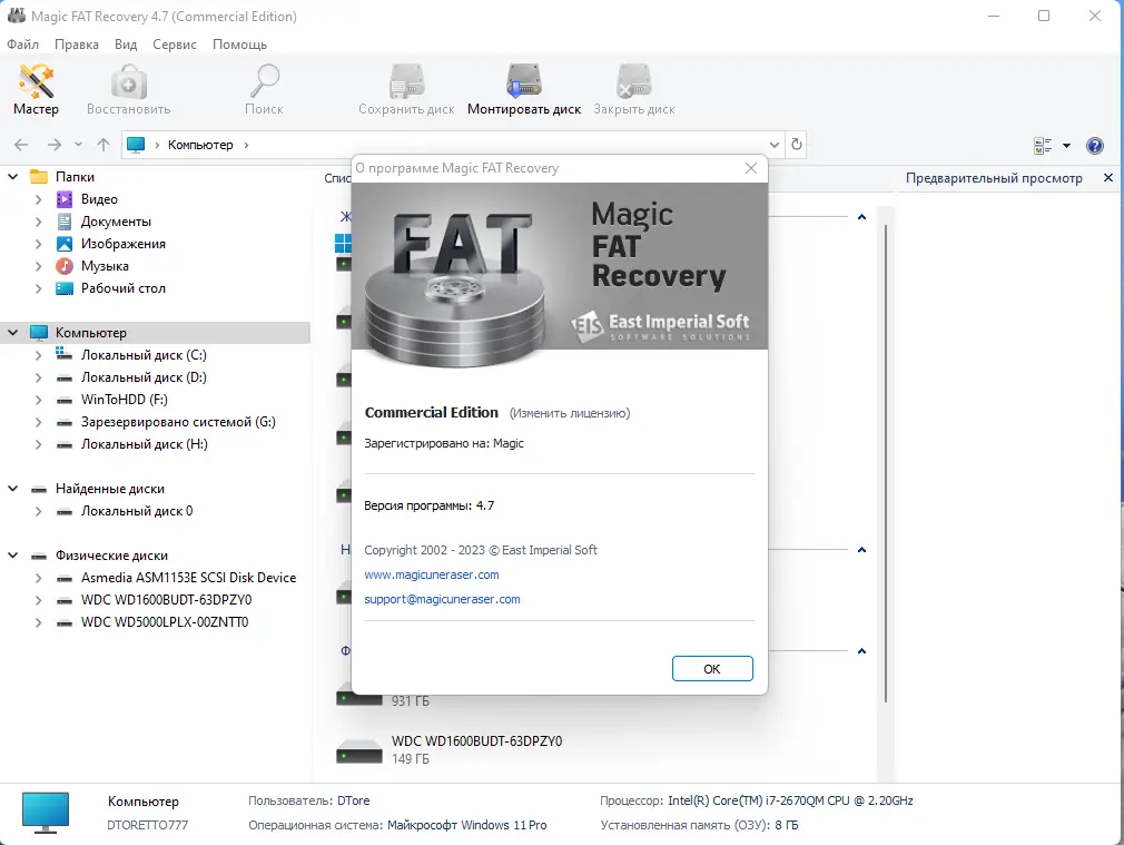 Набор Magic Recovery Software — это коллекция портативных утилит для восстановления данных от компании East Imperial Soft, собранная в единую редакцию с активацией. Программы предназначены для решения широкого спектра задач, связанных с потерей файлов, повреждением носителей и сбоями в файловых системах. Каждый инструмент специализируется на определённом типе данных или носителя, обеспечивая точность и безопасность восстановления.