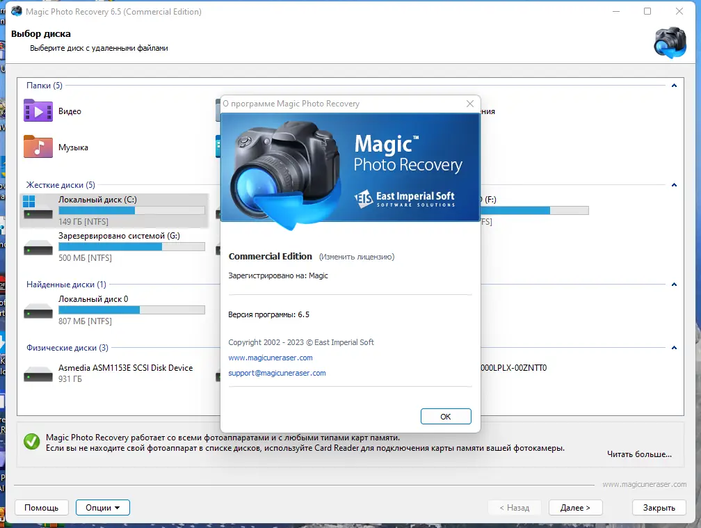 - Magic Photo Recovery специализируется на восстановлении фотографий и RAW-файлов с карт памяти, USB-накопителей и жёстких дисков с возможностью предварительного просмотра