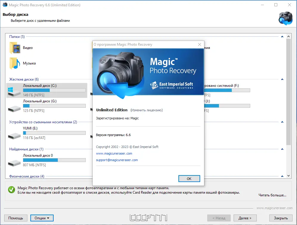 - Magic Photo Recovery специализируется на извлечении фотографий и RAW-файлов с карт памяти, флешек и других устройств, поддерживая предварительный просмотр найденных изображений.