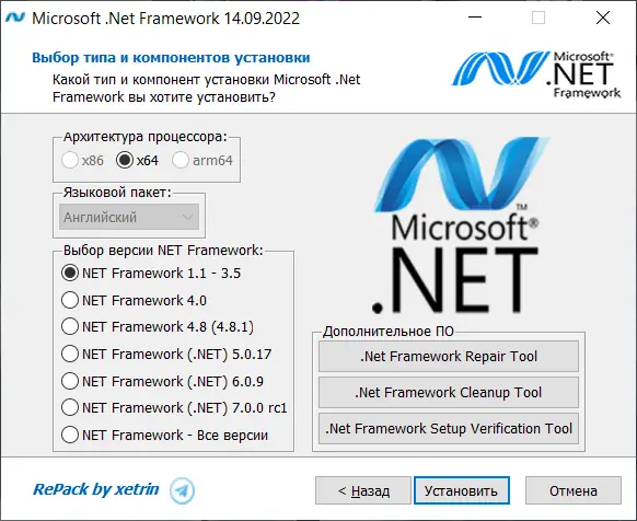 Установка Microsoft .Net Framework доступна в различных версиях, включая 4.8, 4.8.1, .NET 5, 6 и 7. Репак включает в себя дополнительные утилиты для диагностики и восстановления, оффлайн-активацию и языковые пакеты. Поддержка архитектур x86, x64 и arm64 позволяет использовать платформу на большинстве современных устройств. Установка может выполняться в автоматическом или ручном режиме с применением ключей командной строки.
