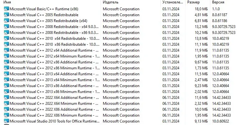 Microsoft Visual C++ Runtimes — это набор распространяемых пакетов, обеспечивающих работоспособность приложений, созданных с использованием Visual Studio. Они включают в себя важные компоненты среды выполнения, такие как CRT, стандартная библиотека C++, MFC и другие. Без их установки многие программы не запустятся, даже при отсутствии полноценной среды разработки на компьютере.