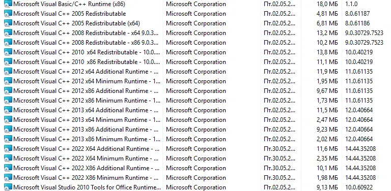 Microsoft Visual C++ Runtimes — это набор распространяемых компонентов, необходимых для запуска приложений, разработанных с использованием Visual Studio. Они включают библиотеки среды выполнения, такие как CRT, стандартная библиотека C++, MFC и OpenMP. Без установки этих модулей многие программы не смогут корректно функционировать.