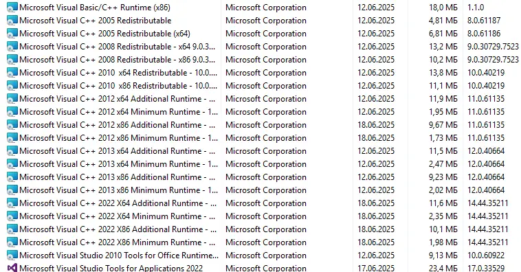 Visual C++ 2022 runtimes обеспечивают бинарную совместимость с приложениями, созданными в VS 2015–2019, что делает их универсальным решением