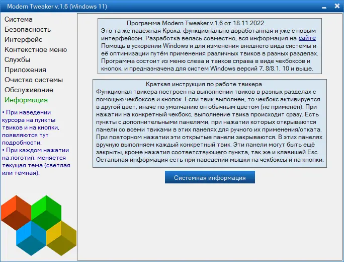 Описание Modern Tweaker
