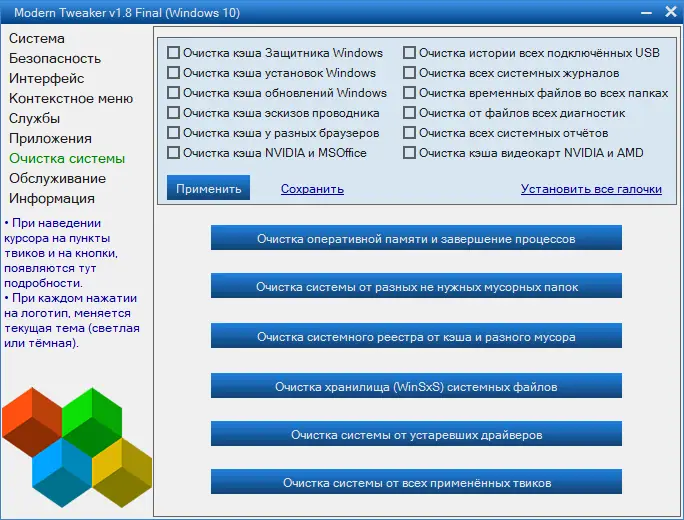 Modern Tweaker — это программная оболочка для тонкой настройки операционной системы Windows, позволяющая повысить производительность компьютера без глубоких технических знаний. Утилита объединяет более ста параметров оптимизации, сгруппированных по категориям: интерфейс, безопасность, службы, фоновые процессы и внешний вид. Программа поддерживает откат изменений и работает в портативном режиме, не требуя установки.