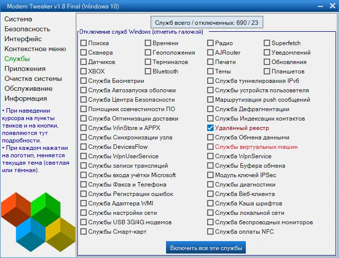 Как пользоваться Modern Tweaker