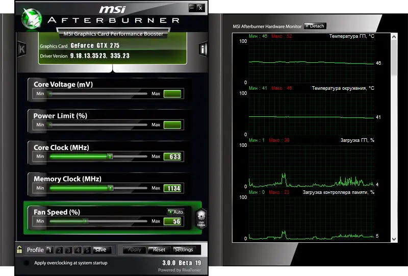 - Полный контроль над частотами графического процессора, видеопамяти и шейдеров.