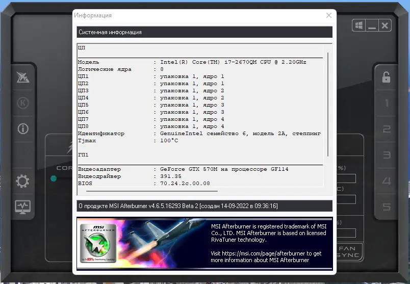 Программа совместима с любыми видеокартами, но обладает дополнительными функциями для продукции MSI.
