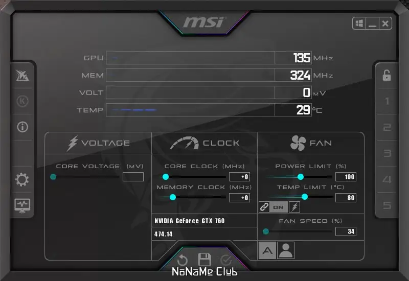 MSI Afterburner — это мощный инструмент, предназначенный для тонкой настройки производительности видеокарты. Утилита поддерживает широкий спектр GPU, включая новейшие модели от NVIDIA, AMD и Intel Arc, обеспечивая стабильный контроль над ключевыми параметрами. Благодаря встроенному модулю аппаратного мониторинга, пользователь может отслеживать загрузку GPU, температуру, частоту ядра и памяти, а также общее энергопотребление системы в реальном времени. Программа совместима с 32- и 64-битными версиями Windows, начиная с Windows 7 и заканчивая Windows 11.