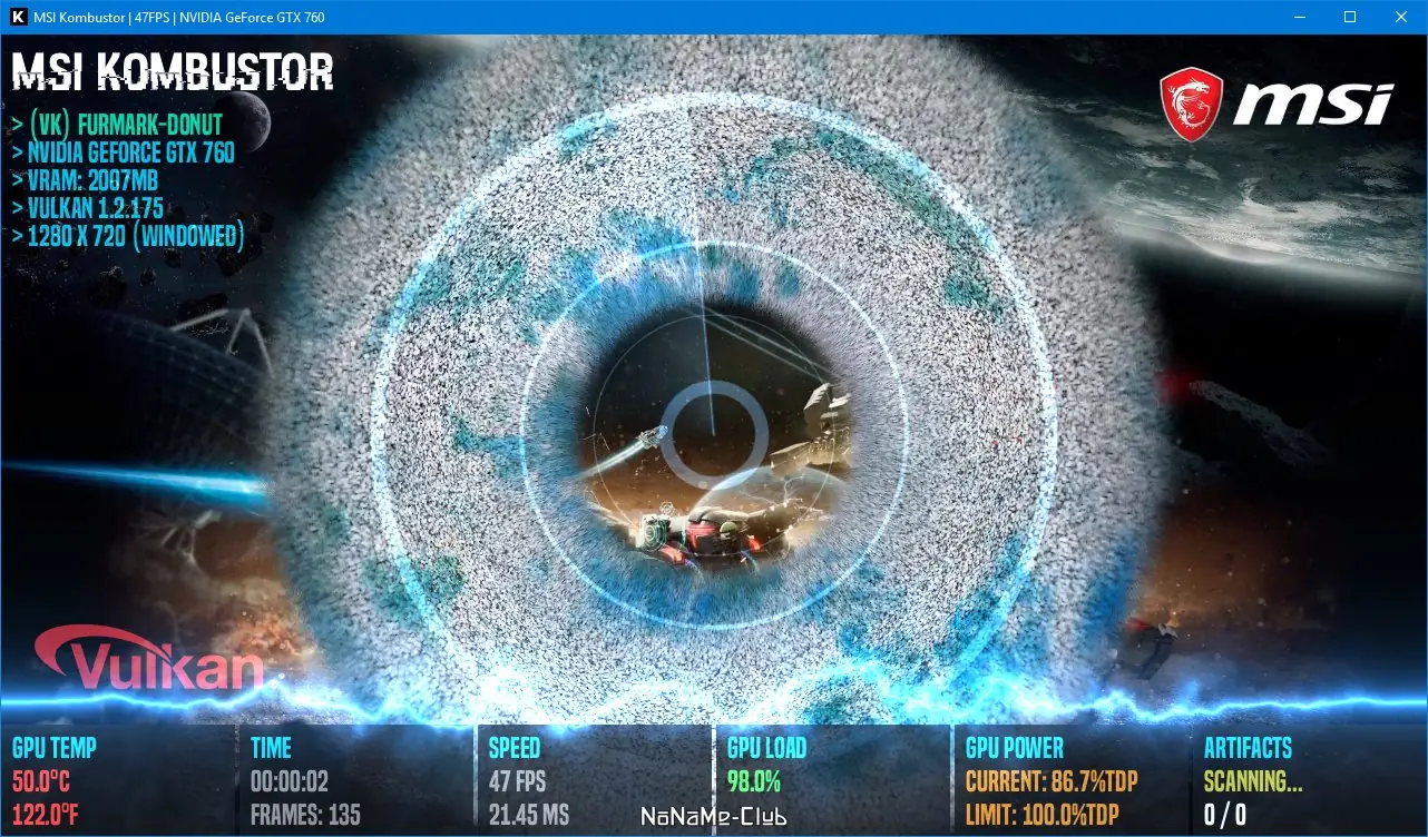 MSI Kombustor — это мощная утилита для стресс-тестирования видеокарт, позволяющая оценить производительность графического процессора под высокой нагрузкой. Программа поддерживает современные API, включая OpenGL и Vulkan, и предоставляет детальную информацию о температуре, загрузке GPU и видеопамяти. С её помощью можно провести тест видеопамяти, проверить стабильность системы и подготовить оборудование к разгону.