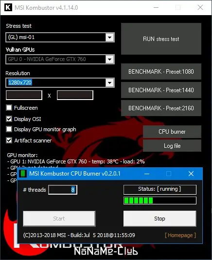 Как пользоваться MSI Kombustor