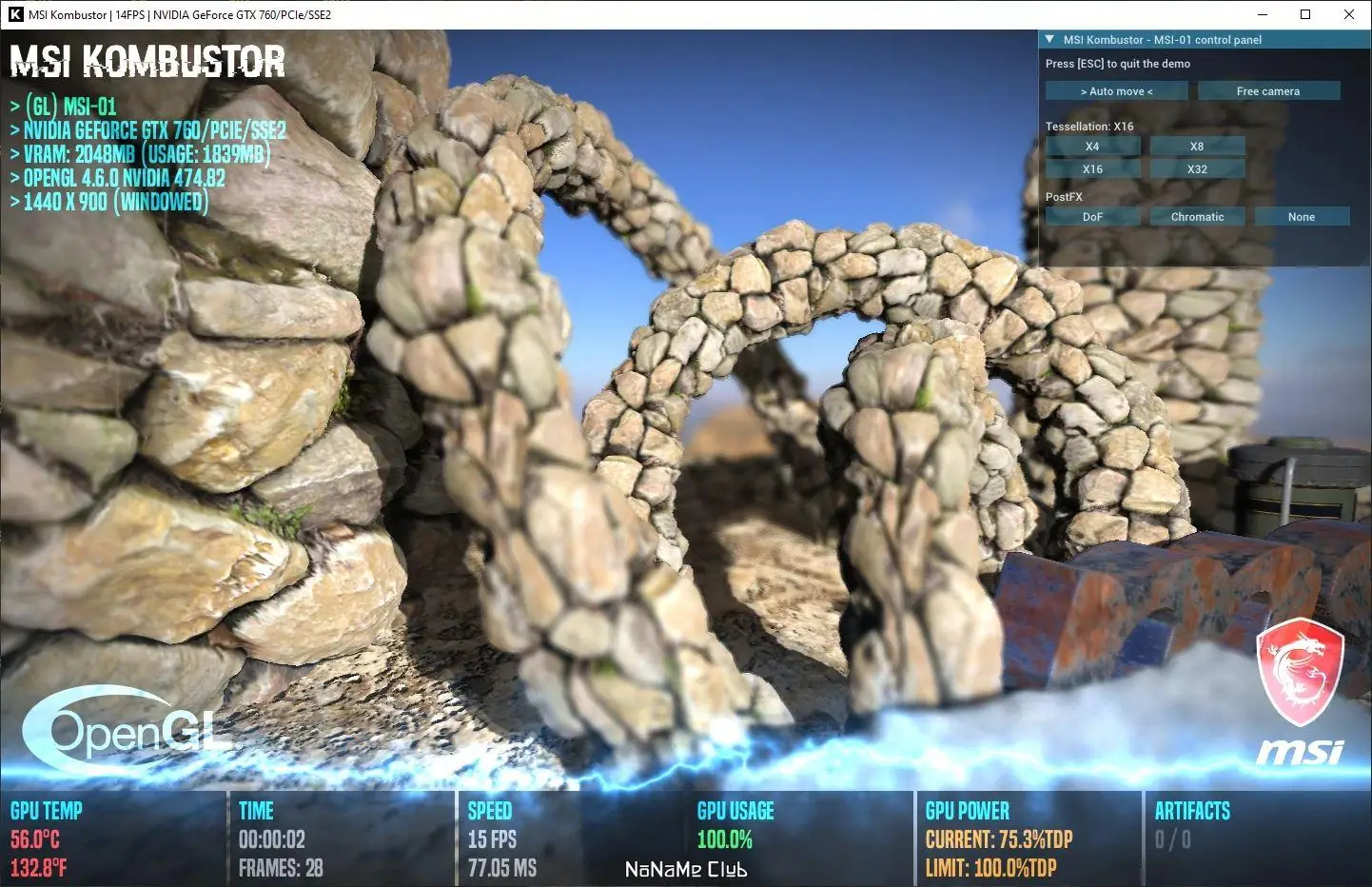 MSI Kombustor предназначен для диагностики и оценки возможностей видеокарт в условиях максимальной нагрузки. Программа включает набор тестов, таких как FurMark, TessMark, MSI PhysX, а также специализированные тесты Phong-Donut и PBR-Donut, которые позволяют оценить качество рендеринга и стабильность системы. Каждый тест можно настроить под конкретные задачи, включая выбор разрешения, режима отображения и параметров визуализации. Поддержка Vulkan и OpenGL делает утилиту универсальной для проверки различных конфигураций и архитектур графических процессоров.