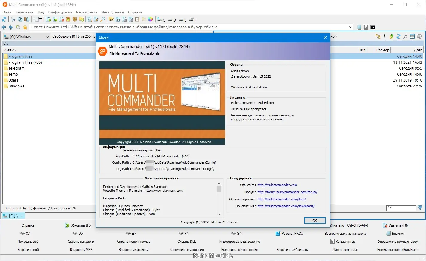 Multi Commander — это продвинутый файловый менеджер с двухпанельным интерфейсом, разработанный для эффективного управления файлами и папками в операционной системе Windows. Программа предлагает расширенные функции, превосходящие возможности стандартного проводника, и поддерживает широкий спектр операций, включая работу с архивами, скриптовую автоматизацию и настройку интерфейса под индивидуальные потребности пользователя.