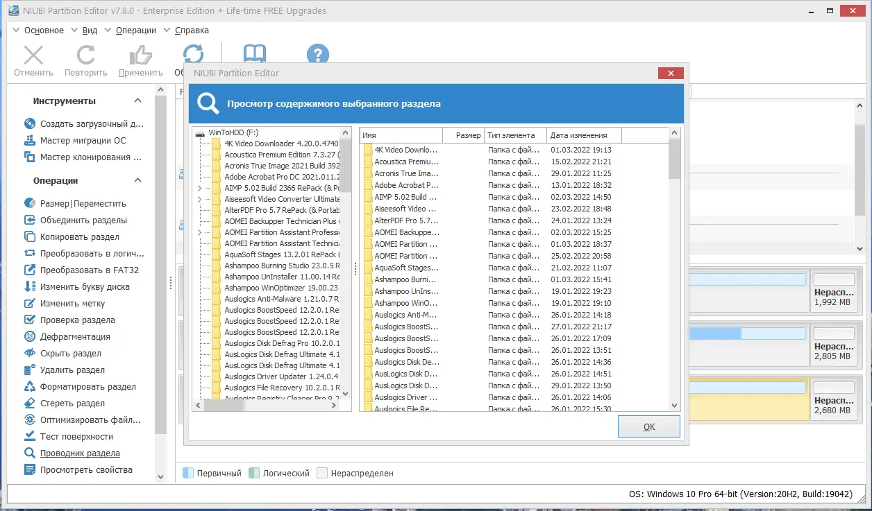 NIUBI Partition Editor — это современное программное обеспечение, разработанное для эффективного управления разделами на жёстких дисках и SSD. Утилита предлагает широкий набор инструментов, включая изменение размеров разделов, их копирование, преобразование файловых систем и создание загрузочных носителей. Благодаря встроенной технологии Roll-Back, программа способна откатить все изменения в случае сбоя, что делает её особенно надёжной при работе с критически важными данными.