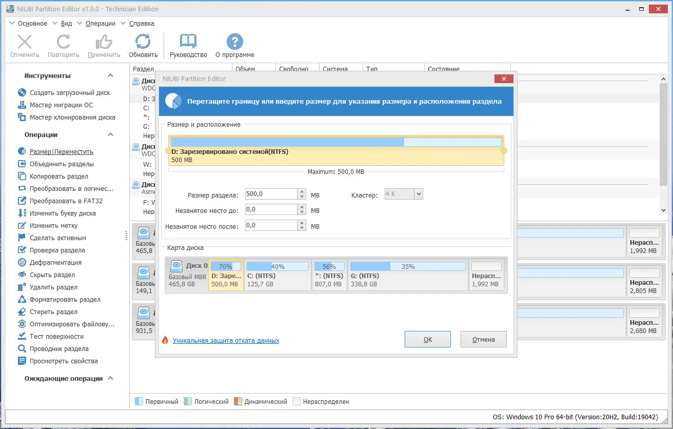 Программа предлагает комплексный подход к управлению дисками, сочетая мощные функции с интуитивным интерфейсом. Она позволяет выполнять операции с разделами в режиме реального времени без необходимости перезагрузки системы, что особенно удобно при работе с активными дисками. Технология Roll-Back обеспечивает автоматическое восстановление состояния системы в случае сбоя, минимизируя риски потери данных.