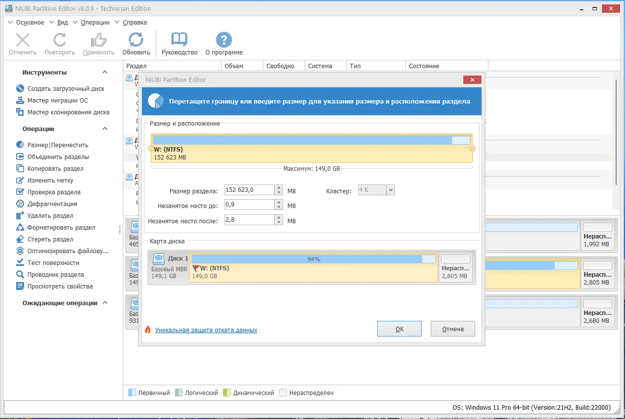 NIUBI Partition Editor — мощная утилита для управления разделами жёсткого диска, сочетающая высокую скорость, безопасность и интуитивный интерфейс. Программа поддерживает широкий спектр операций: изменение размеров разделов без потери данных, создание, форматирование, копирование, конвертация файловых систем, а также дефрагментацию и восстановление. Благодаря технологии Roll-Back и оптимизированным алгоритмам, инструмент обеспечивает надёжность даже при сбоях питания или ошибках оборудования.