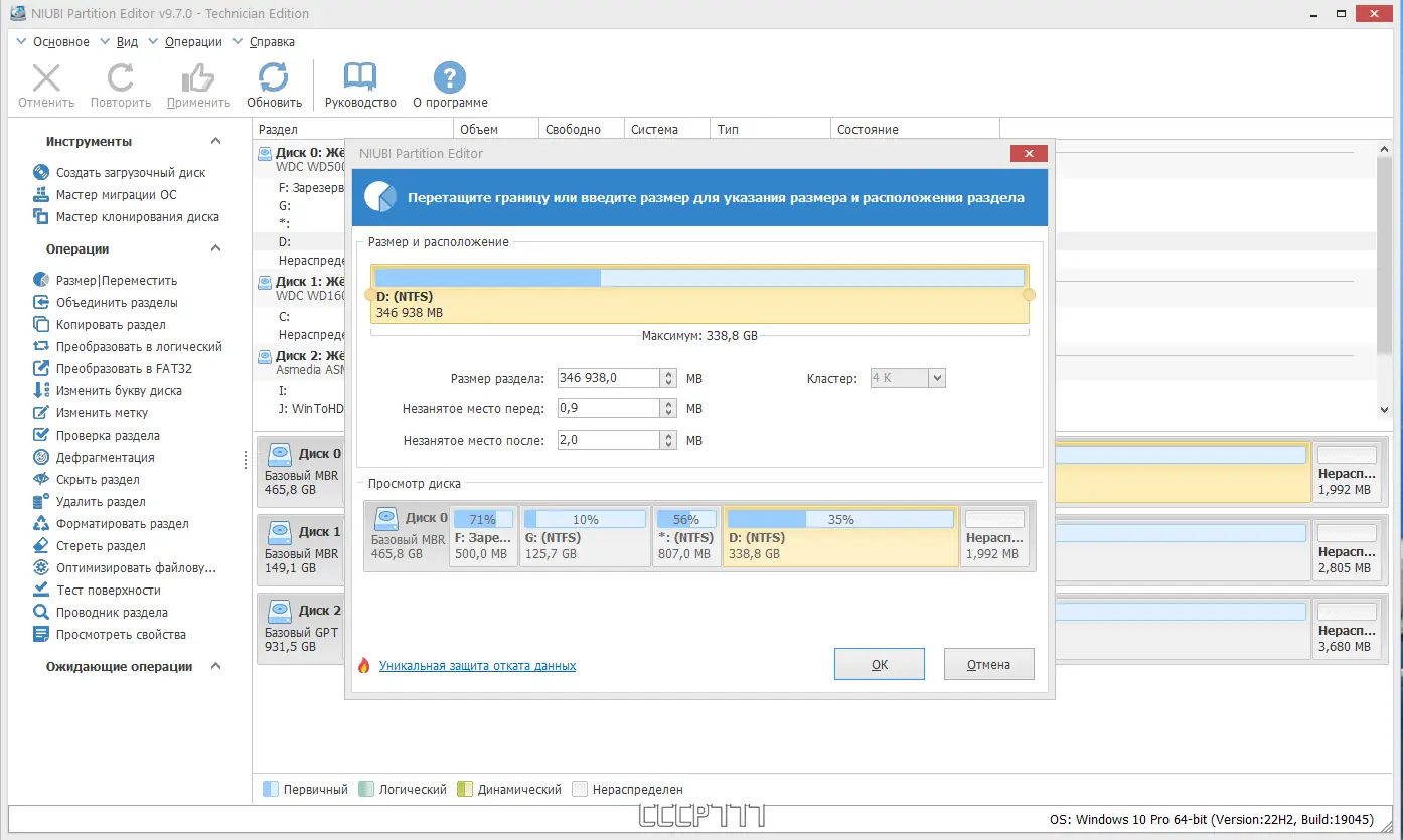 NIUBI Partition Editor — это мощная утилита для управления разделами жёсткого диска, сочетающая высокую скорость работы, надёжность и безопасность при выполнении операций с дисками. Программа поддерживает широкий спектр функций, включая изменение размеров разделов без потери данных, их копирование, форматирование, конвертацию файловых систем и создание загрузочных носителей. Благодаря технологии Roll-Back даже в случае сбоя питание или ошибки система восстанавливается в исходное состояние.