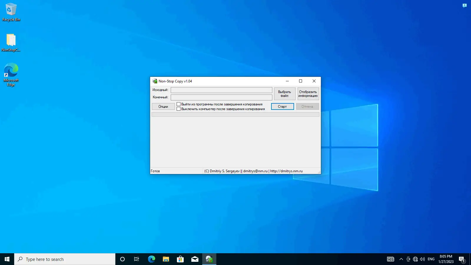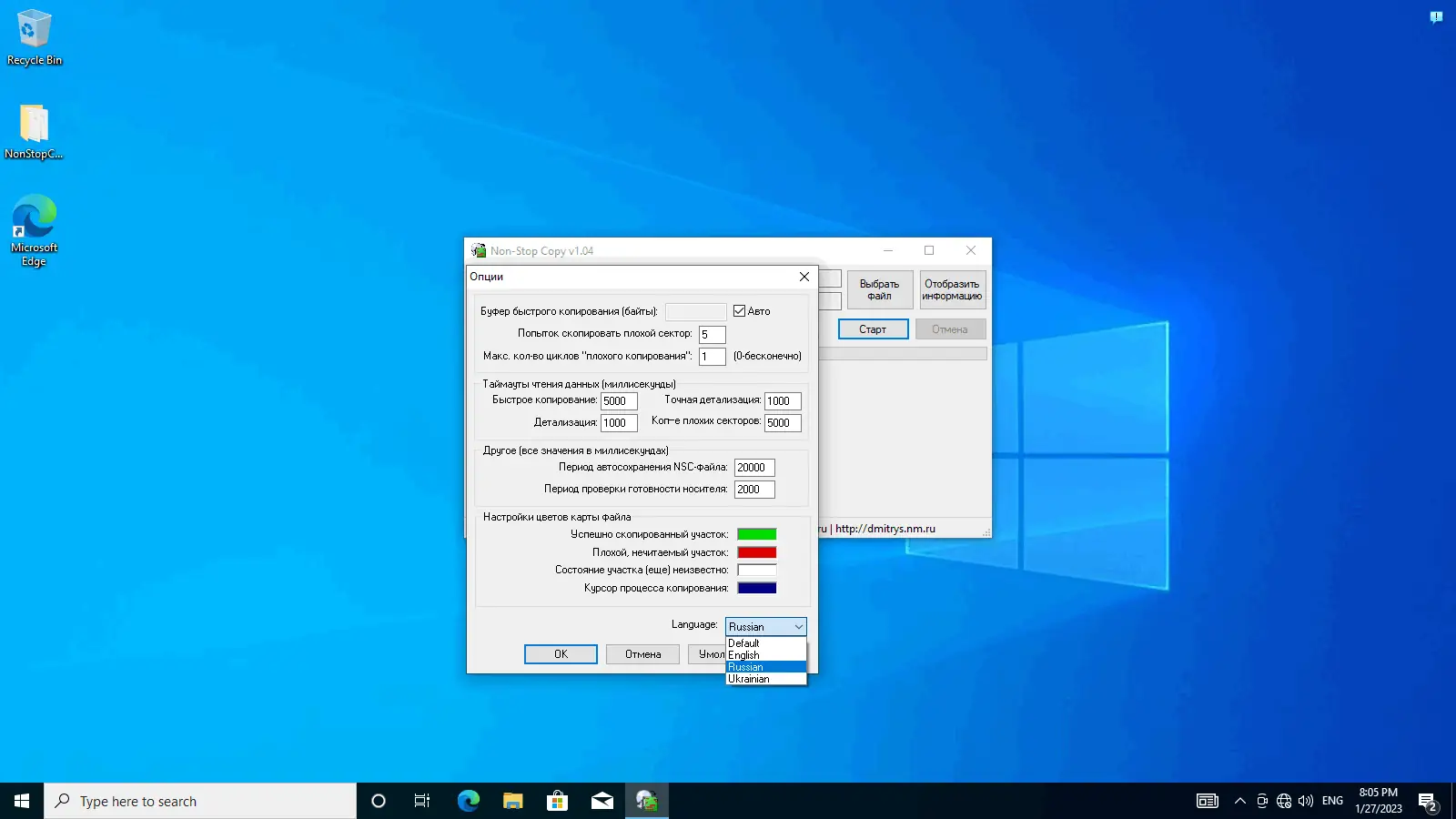 Использование программы простое и интуитивно понятное. Для начала копирования достаточно указать исходный файл и путь назначения. Программа автоматически определит тип носителя и выберет оптимальный размер блока для чтения. В процессе копирования отображается визуальная карта файла, где видны повреждённые участки. Если операция была прервана, её можно возобновить в любой момент — программа продолжит с последнего сохранённого положения. Для копирования целых каталогов в дистрибутив включён скрипт nscopyd.bat, работающий под Windows NT и выше. Также доступна поддержка командной строки, что удобно для автоматизации задач. Через настройки можно включить автоматическое завершение работы программы или выключение компьютера по окончании копирования.
