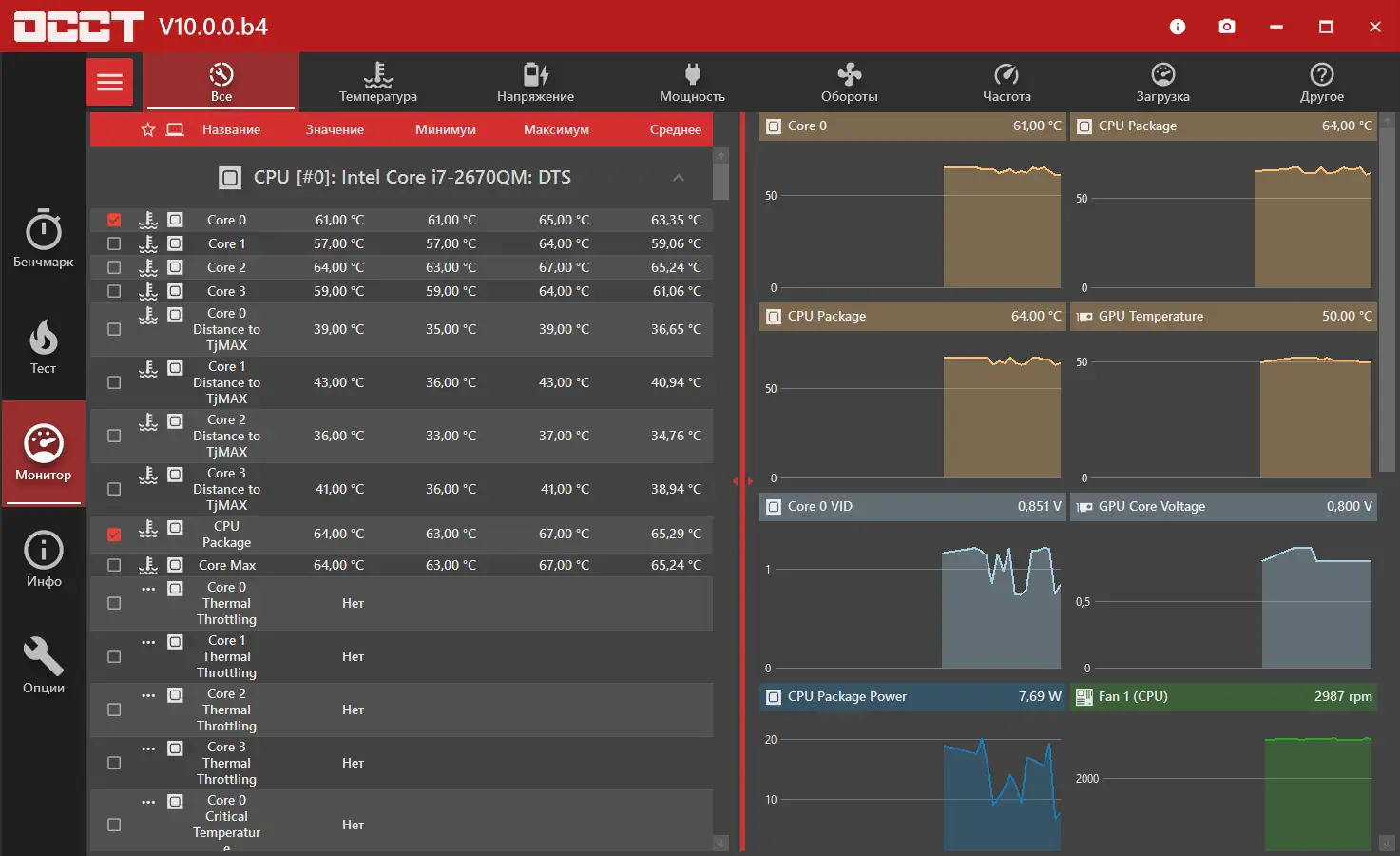 - Построение графиков производительности и температурных режимов в реальном времени.
