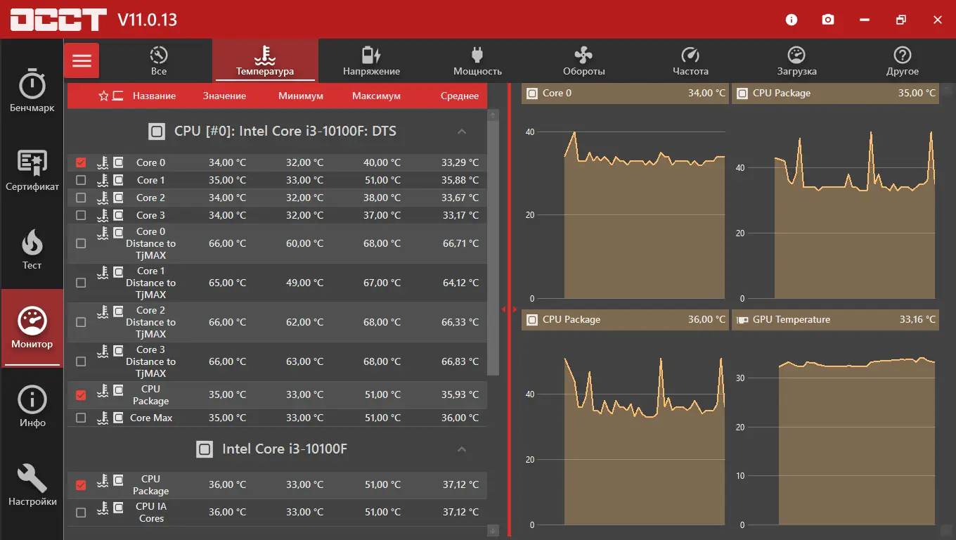 OCCT — это специализированное программное обеспечение, предназначенное для комплексного анализа стабильности аппаратных компонентов ПК. Утилита выполняет стресс-тест CPU, GPU и оперативной памяти, имитируя экстремальные условия эксплуатации. В ходе теста система отслеживает температуру, частоту, использование ресурсов и выявляет возможные сбои, что особенно важно при разгоне или сборке нового компьютера. Результаты отображаются в виде детализированных графиков, позволяя легко интерпретировать изменения во времени.