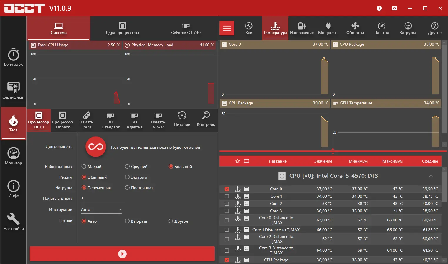 Запуск OCCT не требует сложной настройки: после открытия программы пользователь выбирает тип нагрузки — процессор, память или GPU. Каждый режим позволяет настроить продолжительность теста, уровень интенсивности и параметры мониторинга. Перед началом выполнения нагрузки рекомендуется сохранить текущие настройки и закрыть сторонние приложения, чтобы избежать искажения результатов. После завершения теста система формирует отчет, который можно проанализировать для выявления аномалий в работе компонентов.