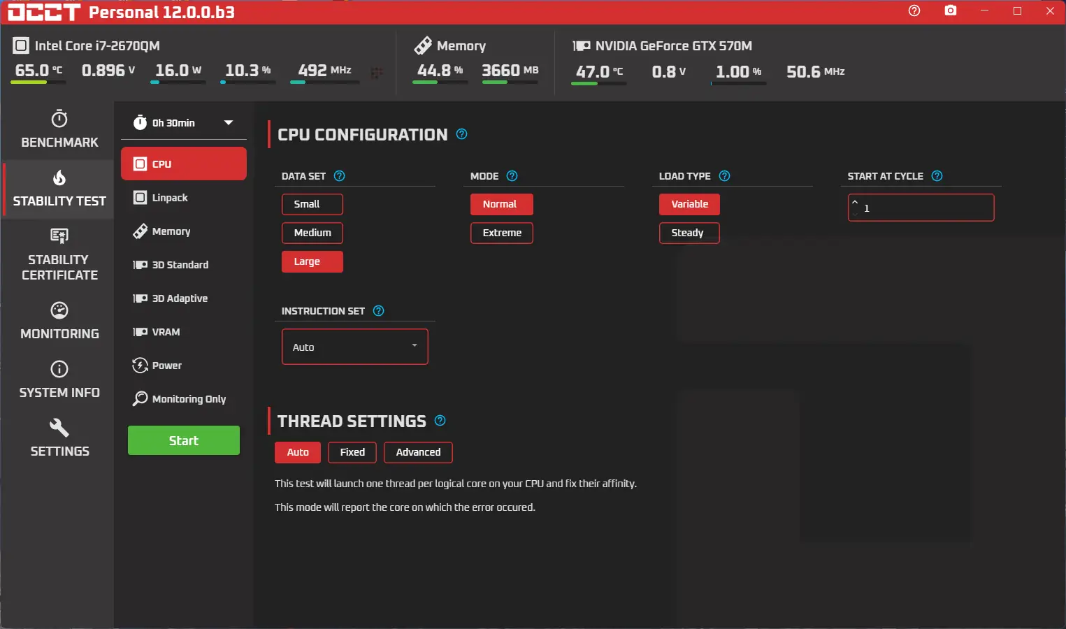 OCCT Perestroika — специализированное приложение, предназначенное для проведения синтетических тестов на стабильность аппаратных компонентов компьютера. Утилита позволяет одновременно проверять взаимодействие процессора и оперативной памяти, а также проводить отдельные испытания каждого из этих устройств. Во время теста отслеживаются ключевые параметры: температура, частота, напряжение, использование ресурсов. Данные визуализируются в виде графиков, что упрощает анализ производительности и выявление аномалий.